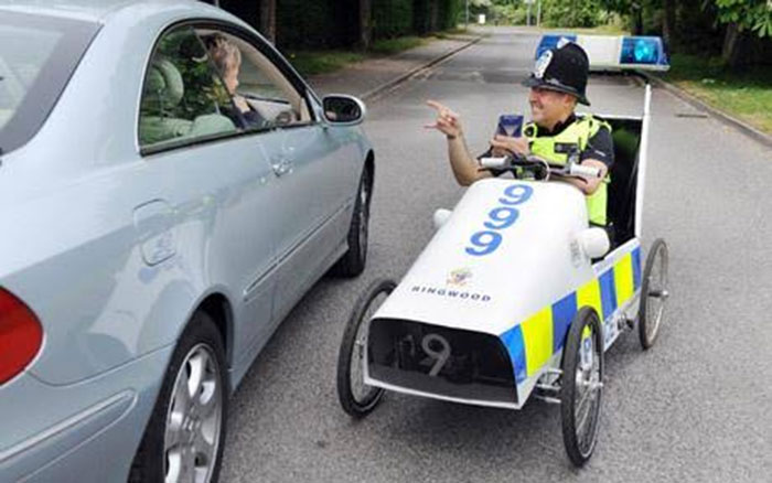 Pemandangan yang tak biasa pada saat kita mengunjungi Inggris. Salah satu kendaraan yang digunakan oleh polisi disana adalah mobil pedal. Di Inggris, mobil pedal ini tidak digunakan untuk mengejar penjahat melainkan untuk menghapus kesenjangan polisi dengan millenial Inggris. Hal ini menjadi salah satu upaya kepolisian Inggris untuk menertibkan masyarakat yang melanggar peraturan. Mobil ini tidak dilengkapi dengan mesin, tenaganya hanya mengandalkan tenaga pedal. Kendaraan ini memiliki kecepatan maksimum 32 km per jam.