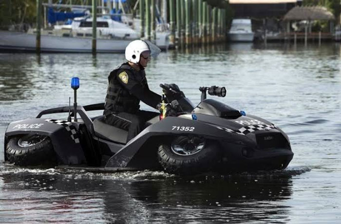 Quadski adalah salah satu kendaraan unik yang digunakan oleh polisi di dubai. kendaraan ini merupakan gabungan dari mobil kecil dan jetski. Uniknya, kendaraan ini dapat dijalankan di darat dan di air. Proses transformasi nya hanya membutuhkan waktu 5 detik. Kecepatan yang dimiliki kendaraan ini adalah 72 km/jam baik di darat maupun di air. Harga kendaraan ini mencapai 40 ribu dollar atau 560 juta rupiah.