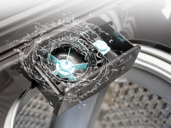 Pakaian anda juga akan jauh lebih bersih secara menyeluruh karena teknologi baling-baling Turbo Mix yang ada pada mesin cuci ini. Teknologi tersebut dapat memastikan pencampuran detergent bubuk maupun cair tercampur sempurna dengan air tanpa residu. Tidak ada residu disaat pencampuran detergen bubuk maupun cair dengan air. Sehingga bisa menghasilkan cucian yang jauh lebih bersih dan menyeluruh dengan teknologi baling-baling turbo mix yang dikendalikan oleh air.